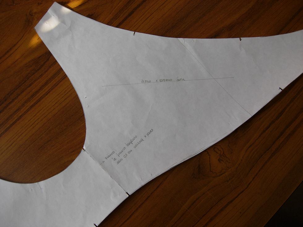 tra le urla, le parolacce, le telefonate e le corse – sono giorni di grande frenesia pre pitti uomo – ho trovato il coraggio di rompere la catena di montaggio e farmi dedicare un po’ di tempo – io e i miei scrupoli! giovedì scorso ho chiesto finalmente l’aiuto di una modellista. elisa ha realizzato per me il cartamodello della parte superiore dell’abito, una base da cui far partire i miei deliri creativi, ma pur sempre una base, che in questo periodo di forte entusiasmo, ma anche di disorientamento creativo, dà riposo al mio cervello esplosivo. ne avevo bisogno. abbiamo fatto le prove su carta, ho tagliato e cucito un prototipo, abbiamo controllato i difetti di vestibilità, lei lo ha poi corretto per me venerdì, quando io non c’ero, e stamattina ho trovato il nuovo cartamodello sul mio tavolo, perfetto. cominciamo