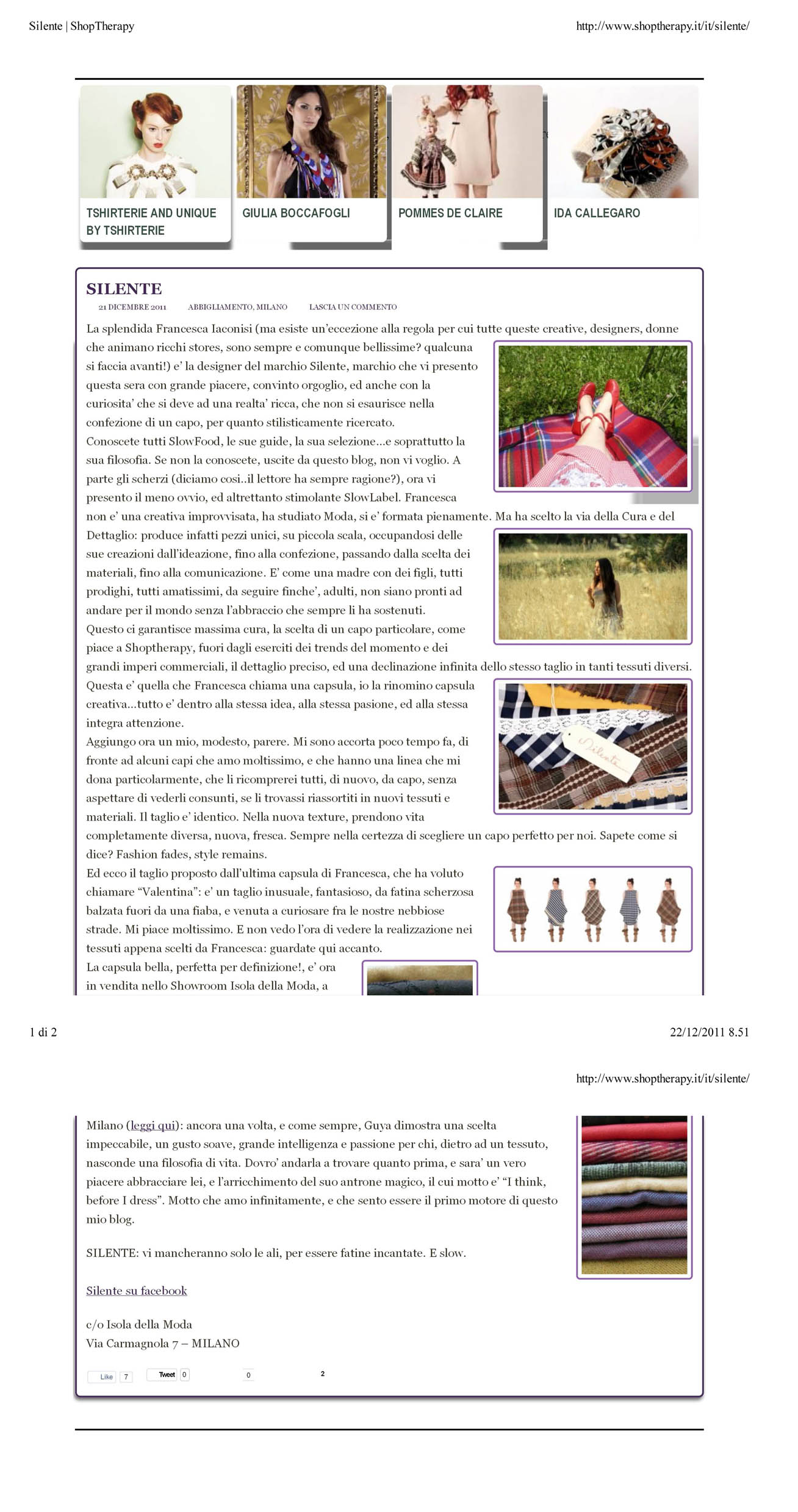 E il freddo vento invernale stanotte ha portato con sè un caldo articolo su ShopTherapy! Sono davvero commossa. Grazie Laura Manfredi.