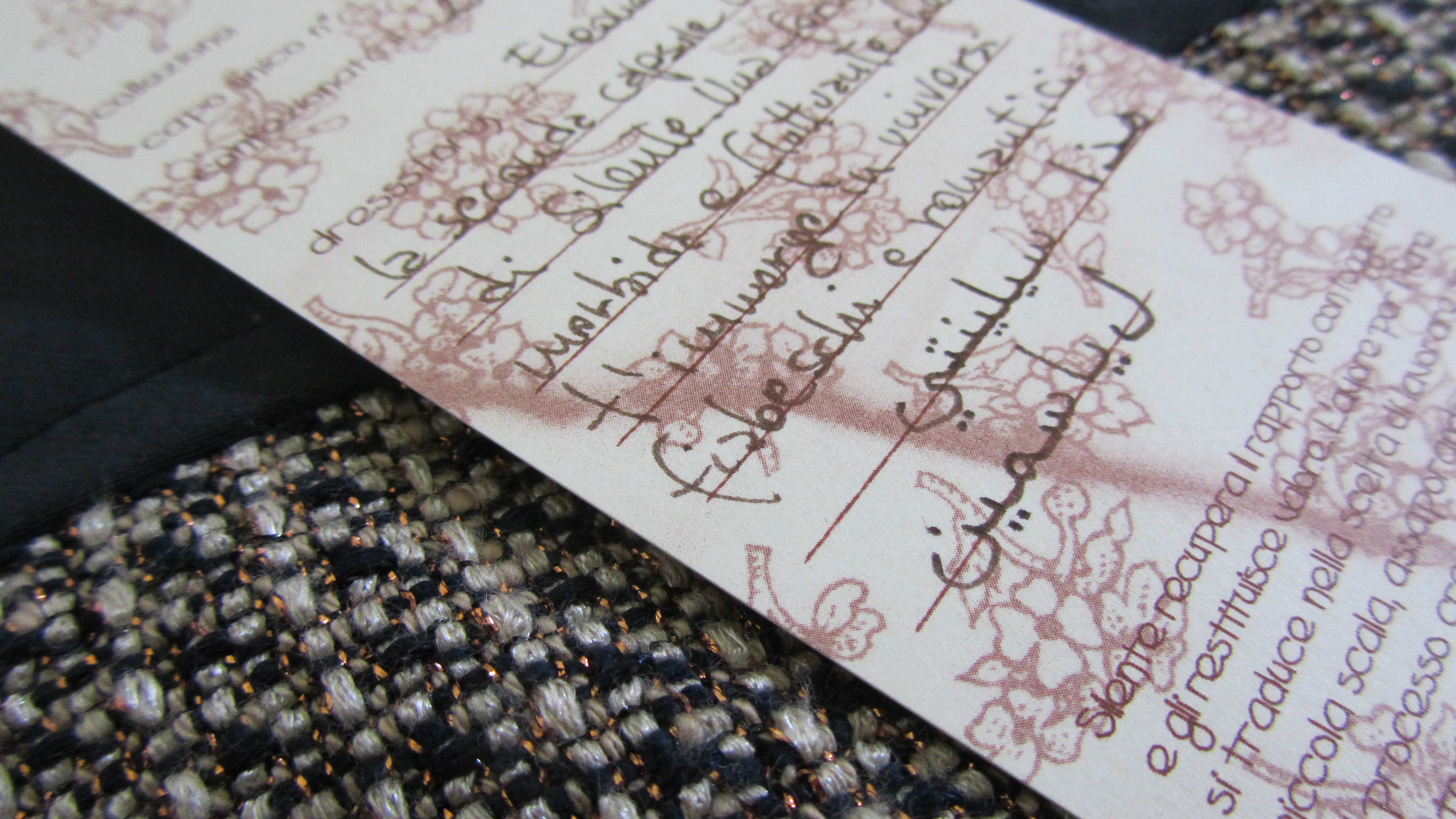 Costruire un vestito e indossarlo è un’esperienza. Da qui l’esigenza di raccontare la storia del capo in ogni etichetta: date, nomi, luoghi di ricerca e aneddoti legati al processo creativo. Testimoniare i passaggi, dalla ricerca alle successive manipolazioni, significa restituire valore: ogni vestito non è solo la fine di un processo, ma è il processo stesso ed è prezioso proprio perché ha una sua storia.